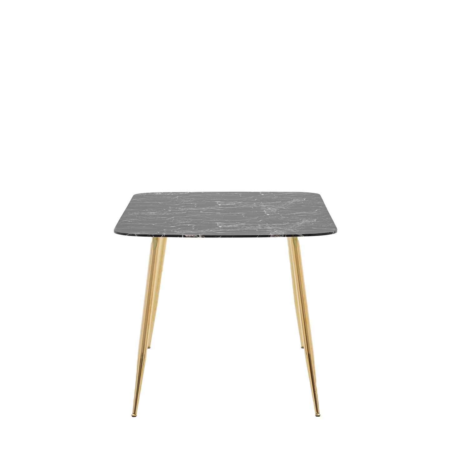 With a sophisticated faux black marble glass top, this rectangular table feels stunningly opulent, the gold coloured polished legs adding the final touch of luxury. Perfectly suited to contemporary or vintage inspired spaces, the table seats 6.