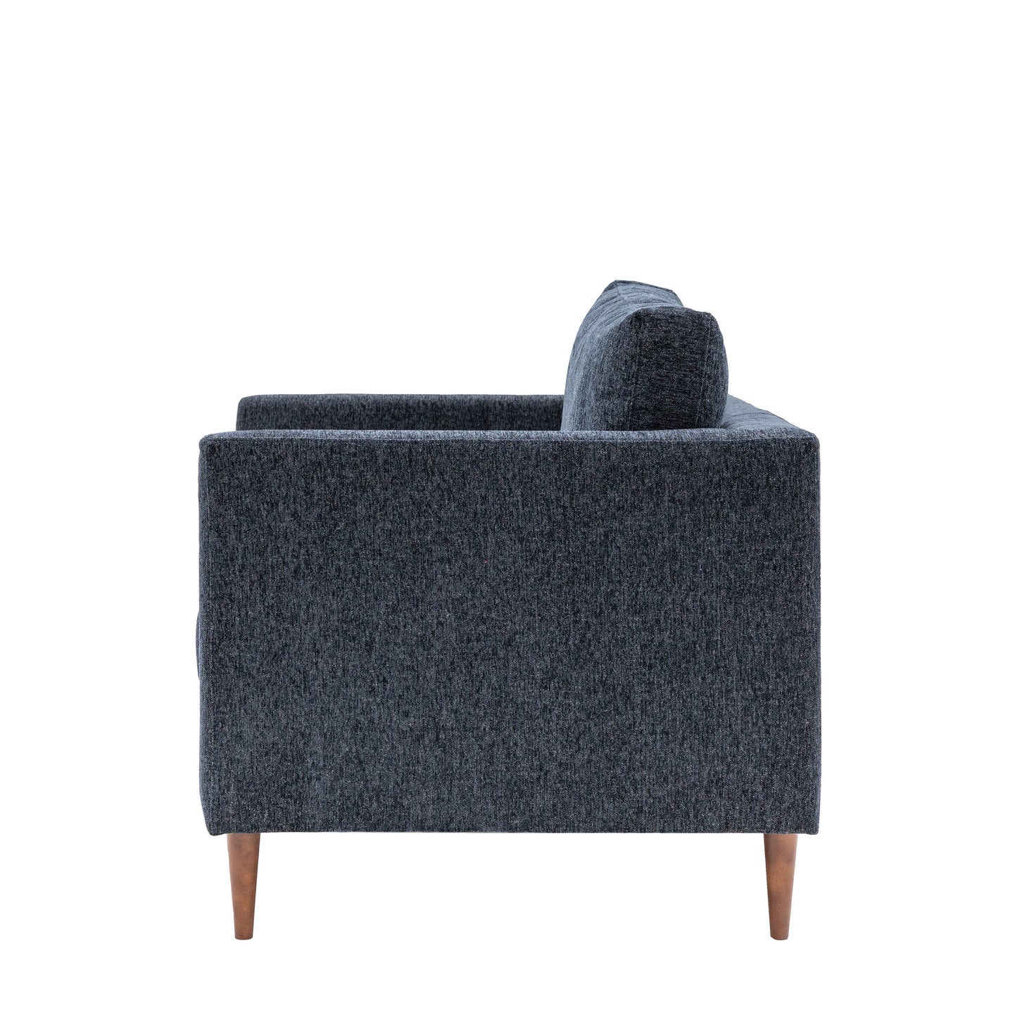 This contemporary armchair offers a simple stylish design which would suit a wide range of interiors. Upholstered in a beautiful charcoal grey fabric with deep seat and back cushions for comfort, the turned wooden legs echo the shape of the gently tapered arms in a lovely design detail. Matching sofas are available to give a coordinated look to a room. Also available in light grey and rust.