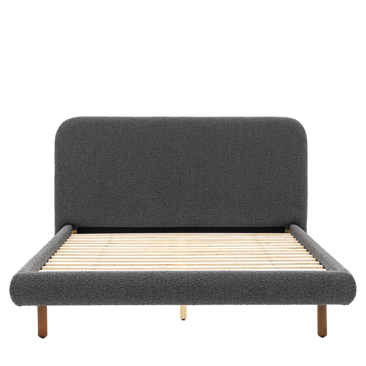 Upholstered in dark grey boucle fabric with an intriguing bobble texture this modern double bedstead will update any bedroom. The slim wooden legs and gently curved headboard add to the contemporary feel, making this bedstead the perfect addition to any modern home. Also available in other sizes and colours.