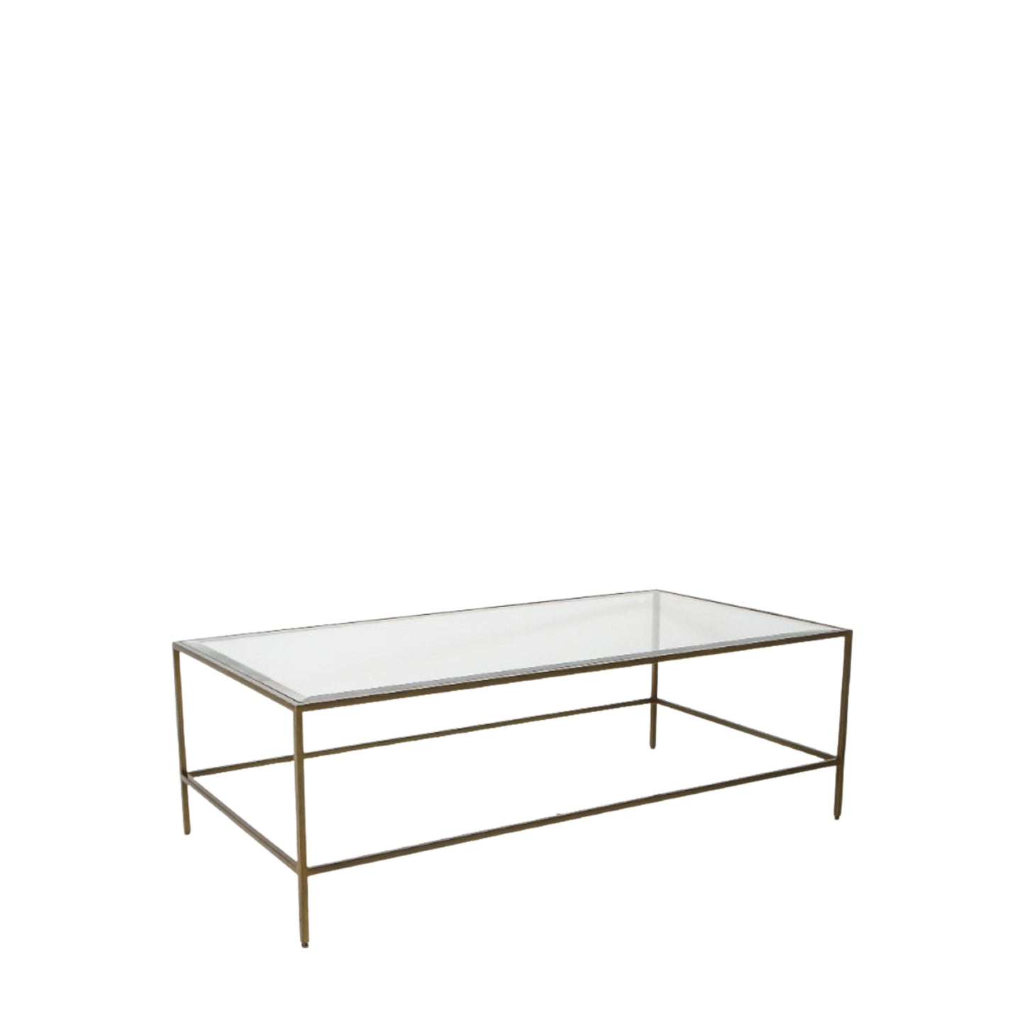 With a sleek design this coffee table is sure to suit any sophisticate interior, featuring an antique metal frame in a bronze finish with an inlaid bevelled glass top.