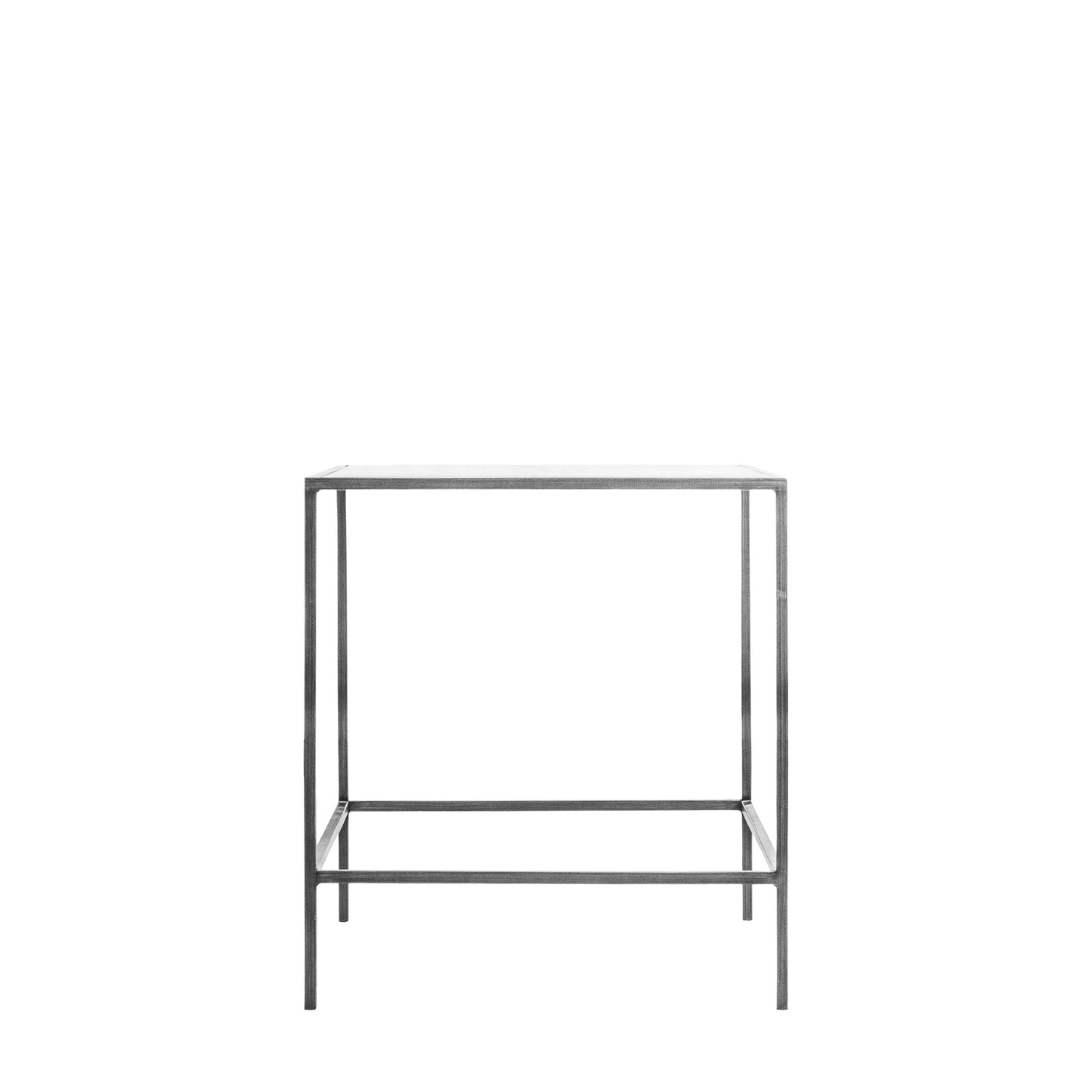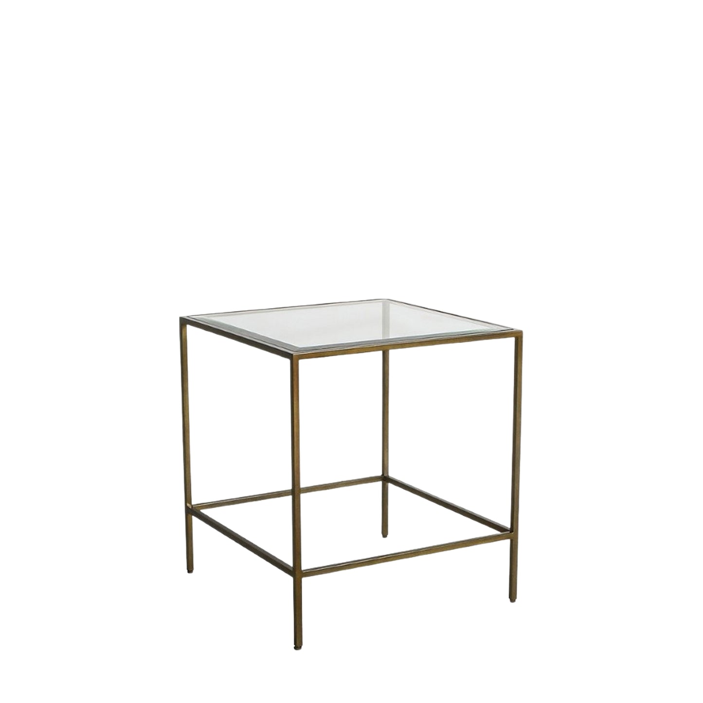 With a sleek design this collection is sure to suit any sophisticate interior. This collection features an antique metal frame in a bronze finish with inlaid, bevelled glass tops.